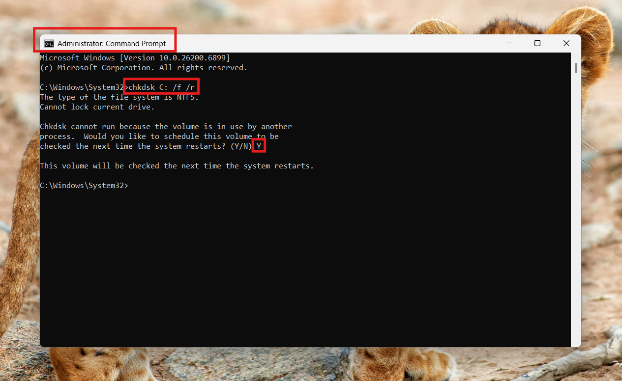 3. Jos sinua kehotetaan ajoittamaan seuraava uudelleenkäynnistys, kirjoita Y ja paina Enter.