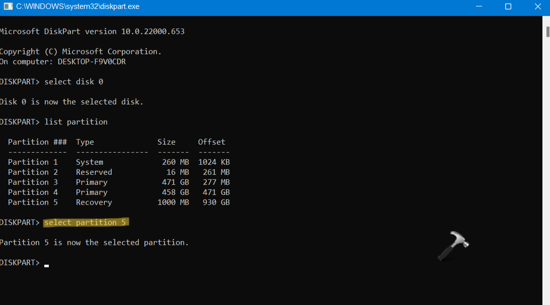Huomaa: Korvaa ”5”Järjestelmän osionumerolla.