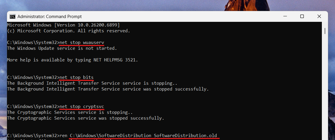 ren C:WindowsSoftwareDistribution SoftwareDistribution.old