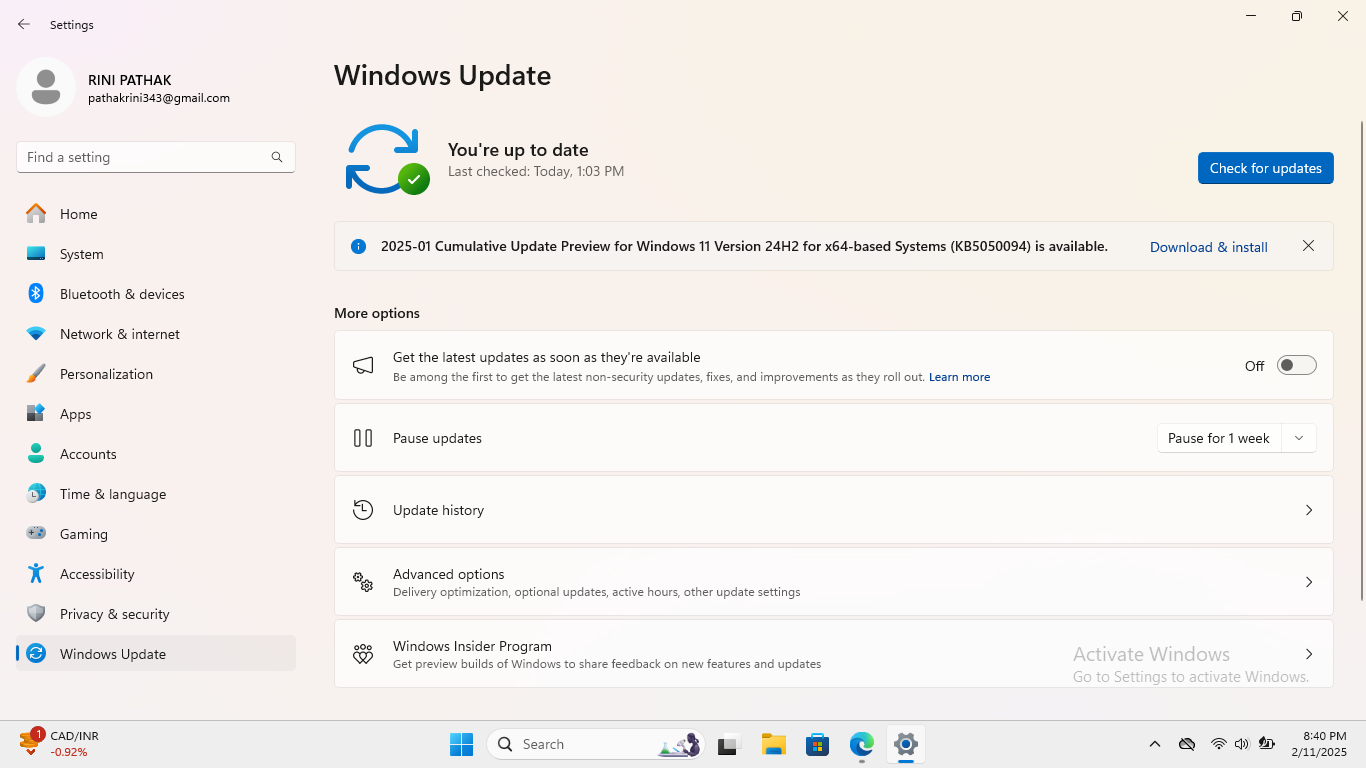Päivitä Windows siirtymällä kohtaan Asetukset ja sitten Windows Update. Tarkista, onko päivityksiä saatavilla. Päivitä sen jälkeen tarvittaessa.