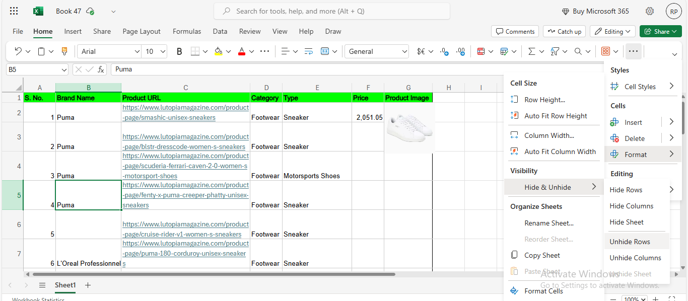 Excel ei ole oletuksena etsimässä piilotetuista tai suodatetuista tiedoista. Jotta toiminto toimisi oikein, näytä piilotetut tiedot tai tyhjennä olemassa olevat suodattimet. Voit tehdä saman noudattamalla alla annettua prosessia -
