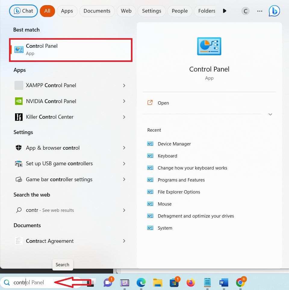 AvataOhjauspaneelietsimällä sitä hakupalkista.