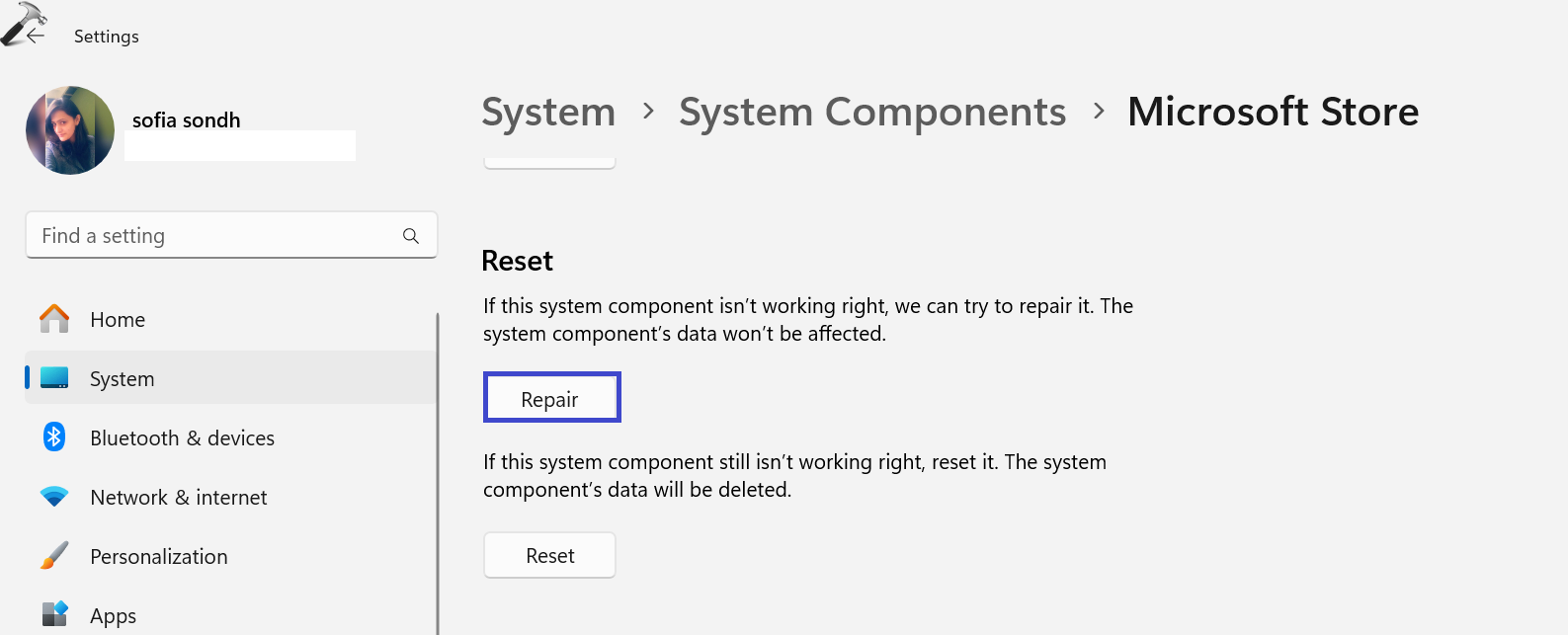 Korjaus 3: Korjaa Microsoft Store -sovellukset