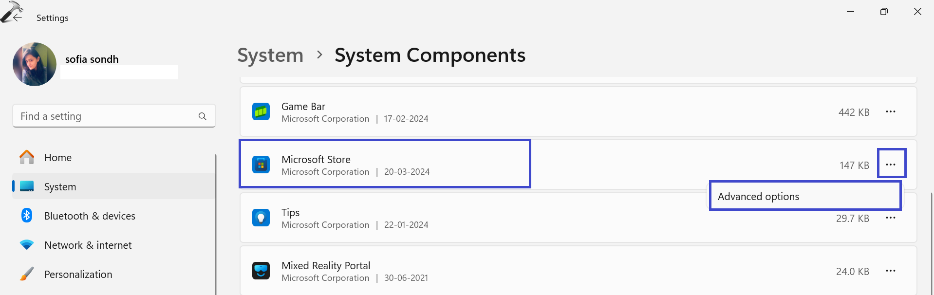 3. Napsauta ellipsiä (…) kohdan "Microsoft Store" ja valitse "Edistynyt vaihtoehto” vaihtoehto.