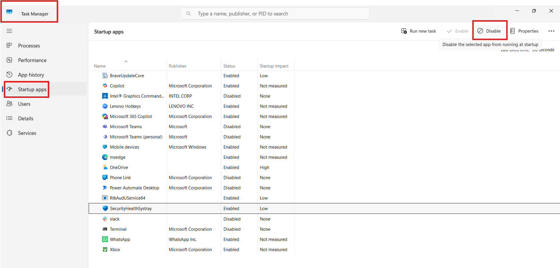 3. Siirry Käynnistys-välilehteen ja napsauta Avaa Tehtävienhallinta.