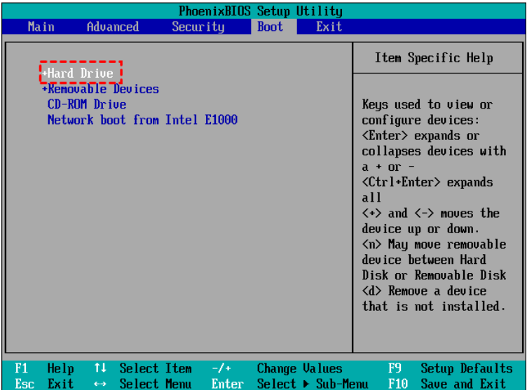 6. Tarkista käynnistyslaitteiden luettelo nähdäksesi kumpi on asetettu ensisijaiseksi käynnistyslaitteeksi.