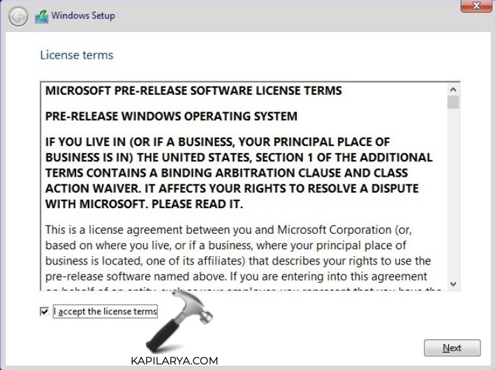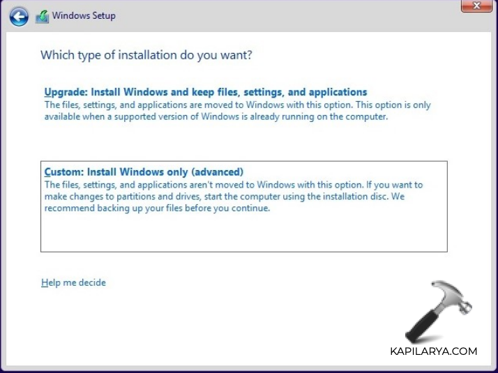 6. Hyväksy lisenssiehdot ja valitse ”Mukaute: Asenna vain Windows”.