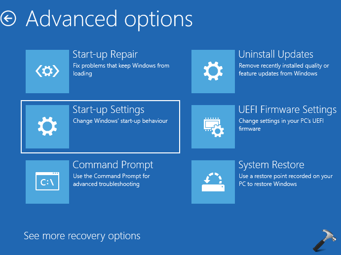 Käynnistä edistyneisiin palautusvaihtoehtoihinTämän oppaan käyttäminen.