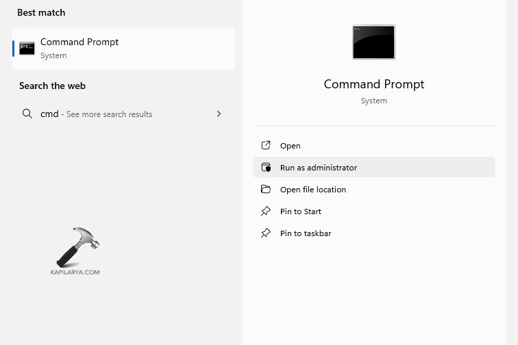 Vaihe 1-Avaa ensin komentokehote ja suorita se järjestelmänvalvojana.
