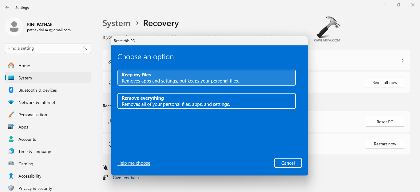 Viimeinen tapa, jolla käyttäjät voivat korjata tämän ongelman, on nollata tietokone. Ennen kuin nollaat tietokoneen, varmista kuitenkin, että olet varmuuskopioinut kaikki tietokoneen tiedostot ja siirrä ne ulkoiseen laitteeseen. Tämä auttaa pitämään kaikki tiedot turvassa. Noudata nyt näitä ohjeita nollataksesi PC-