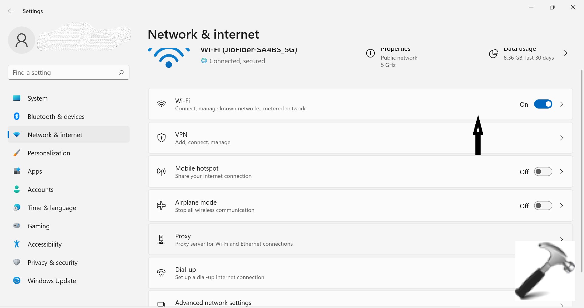 2. ValitseVerkko ja internetvasemmasta ruudusta ja avaaVerkon lisäasetukset.