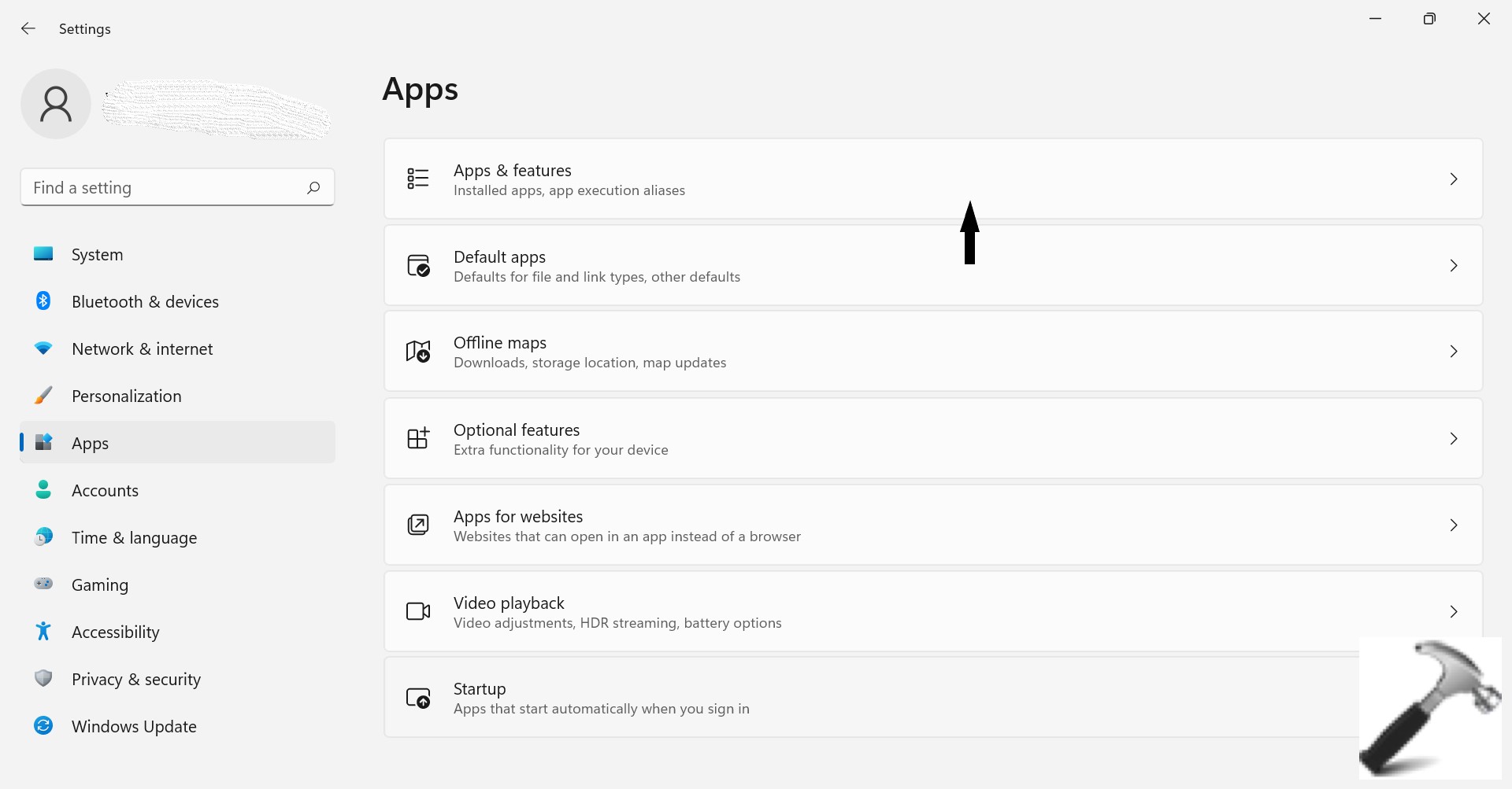 2. ValitseSovelluksetvasemmasta ruudusta ja avaaSovellukset ja ominaisuudet.