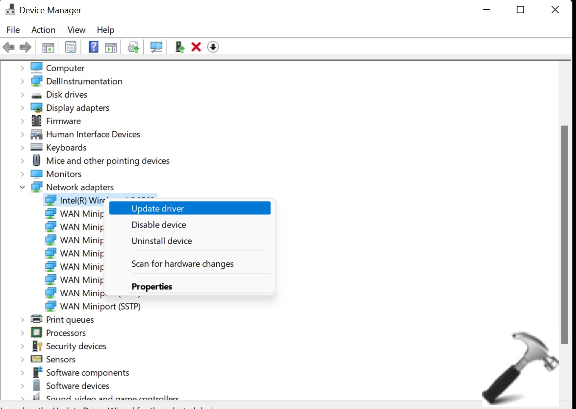 2. Laajenna Verkkosovitin ja napsauta hiiren kakkospainikkeella Wi-Fi-ohjainta valitaksesiPäivitä ohjainvaihtoehto.