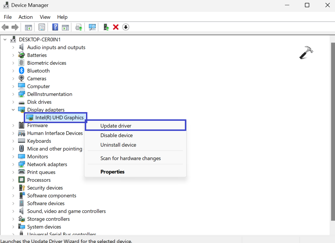 3. Napsauta nyt ohjainta hiiren kakkospainikkeella ja napsauta Päivitä ohjain.