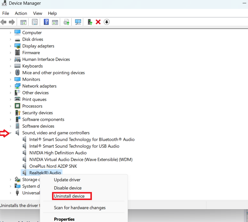 Korjaus 1: Asenna ääniohjain uudelleen Windows 11:ssä