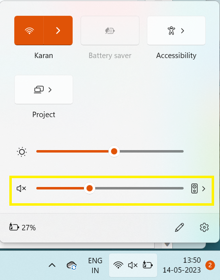 - Avaa toimintokeskus painamalla Windows + A -näppäimiä.