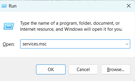 - Avaa Suorita-kehote painamalla Windows + R-näppäimiä. Kirjoita sittenservices.mscja napsauta Enter.