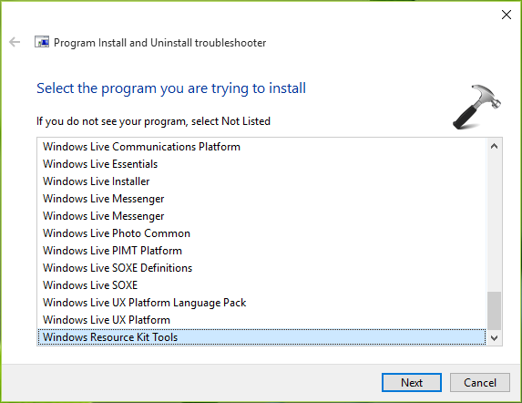 Korjaus 1: Ohjelman asennuksen ja vianmäärityksen poistaminen
