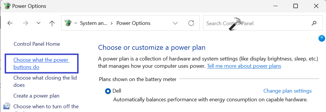 3. Valitse vasemmasta paneelista ”Valitse, mitä virtapainikkeet tekevät".