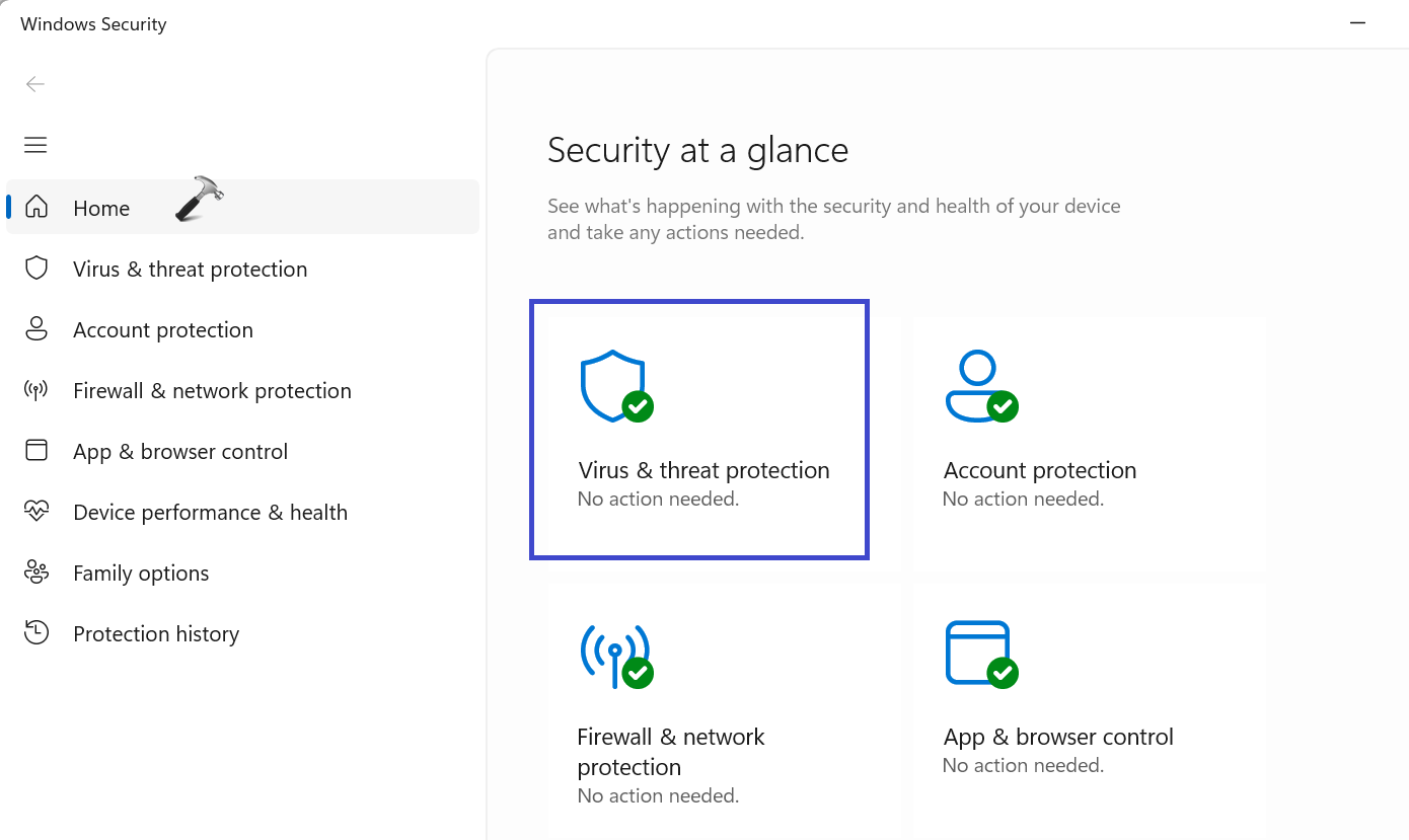 3. Valitse nyt ”Virus- ja uhkien suojaus”Vaihtoehto.
