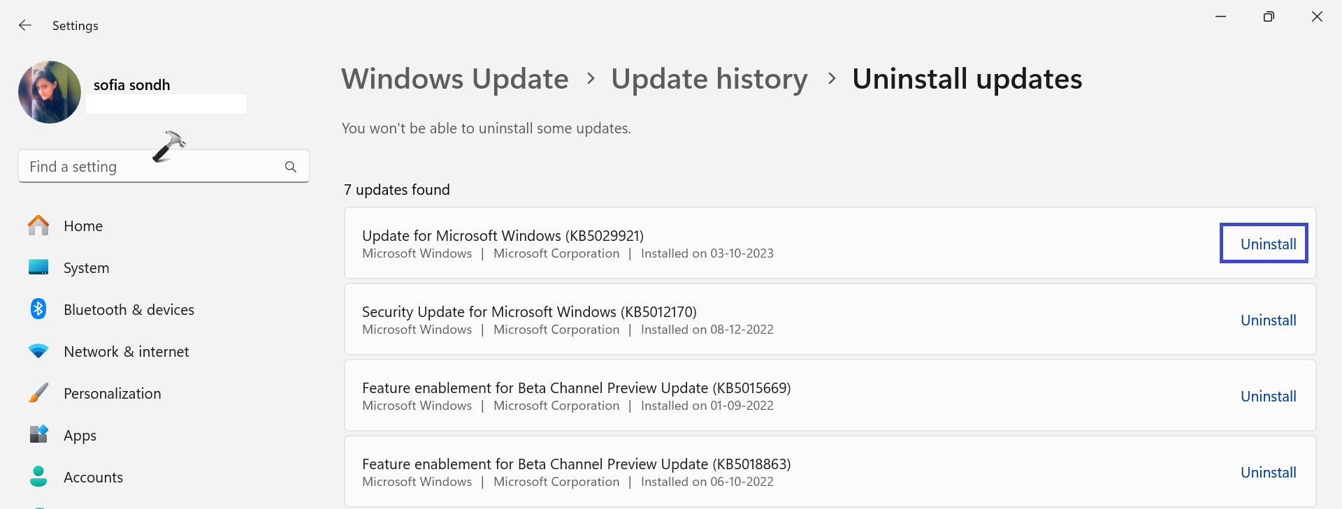 Tämän korjaamiseksi voit yrittää poistaa päivityksen. Jos haluat tehdä niin, seuraa alla olevia vaiheita: