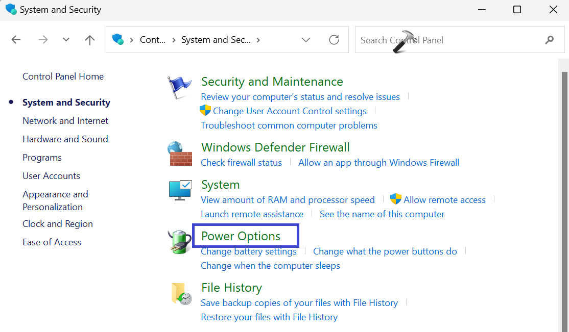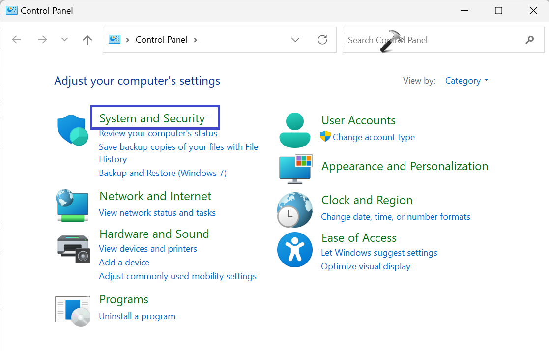 1. Avaa ohjauspaneeli ja valitse ”Järjestelmä ja turvallisuus”Vaihtoehto.