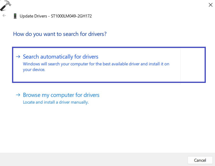 2. Valintaikkuna tulee näkyviin. Valitse ”Hae automaattisesti ohjaimilta”Vaihtoehto.