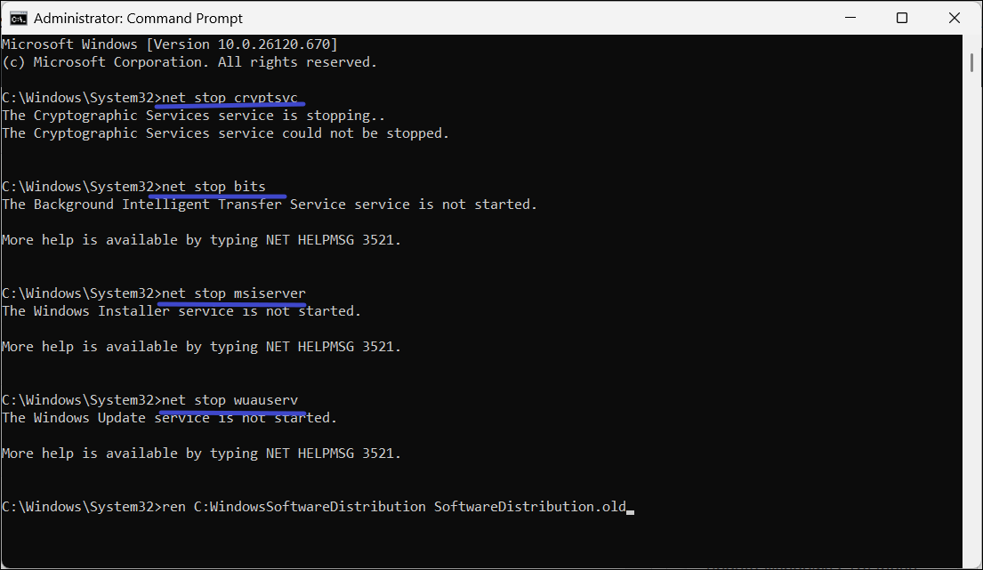 ren C:WindowsSoftwareDistribution SoftwareDistribution.old