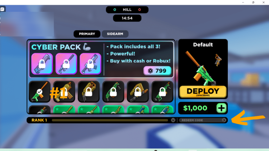 - Katso aseiden valintaaluetta ja löydäLunastaa koodiTekstilaatikko.