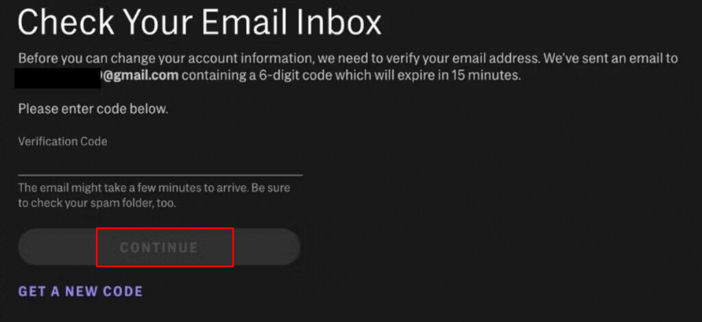 - Kertaluonteinen koodi lähetetään sähköpostiisi. Varmista sitä, että voit tarkistaa sähköpostiosoitteesi pyydettäessä. Kirjoita koodi ja valitseJatkaa.