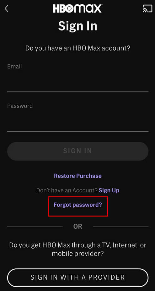 Jos käytät tietokonetta HBO Max -salasanan palauttamiseen, sinun on tehtävä se verkkoselaimen kautta. Mutta vaiheet ovat melko yksinkertaisia: