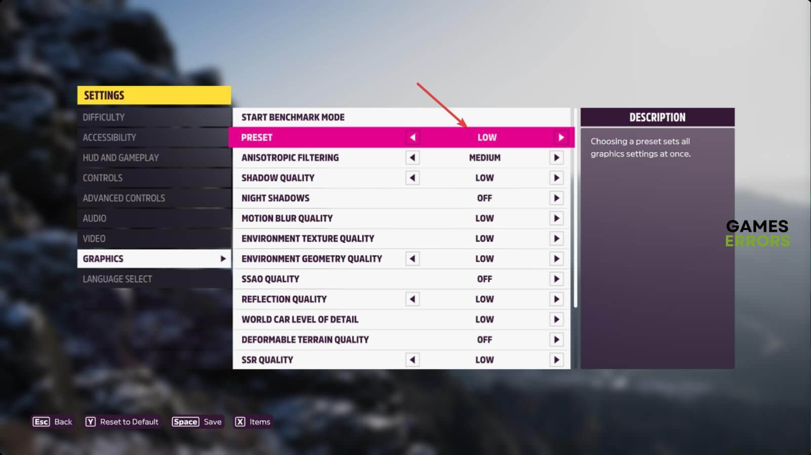 - Siirry Forza Horizonin videoasetuksiin uudelleen.