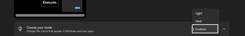 3.Aseta sittenValitse oletussovellustilavaihtoehtoTummatehdäksesi kaikkien Windows-sovellusten taustan mustaksi.