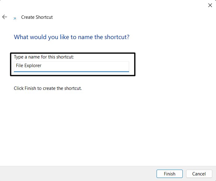 4.Sen jälkeen syötäTiedostonhallintainKirjoita nimi tälle pikanäppäimelletekstiruutua ja napsautaValmis.