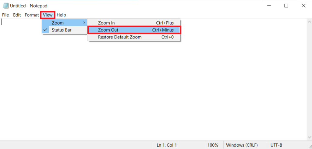 2.Napsauta Muistio -ikkunassaNäkymäValikkopalkki ja valitseTilapalkkiVaihtoehto kontekstivalikosta.