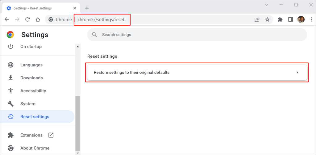 - Liitächrome://settings/resetChromen osoitepalkissa ja painaEntertaiPalata.