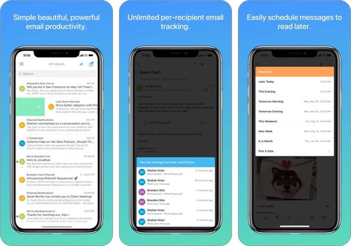 Polymail on puhdas ja ominaisuuspakattu sähköpostisovellus, joka on suunniteltu ammattilaisille ja joukkueille. Se yksinkertaistaa sähköpostinhallintaa älykkäillä työkaluilla, kuten sähköpostien seuranta, seurannan muistutukset ja mallit.