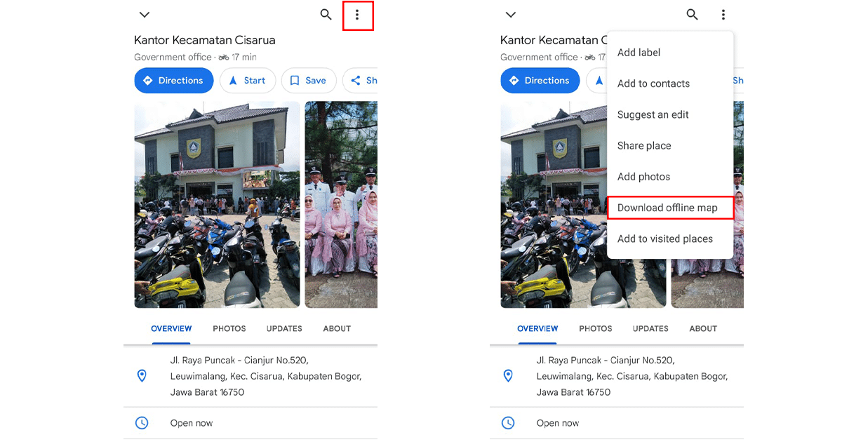 Voit ladata Google Mapsin offline -kartan noudata näitä vaiheita: