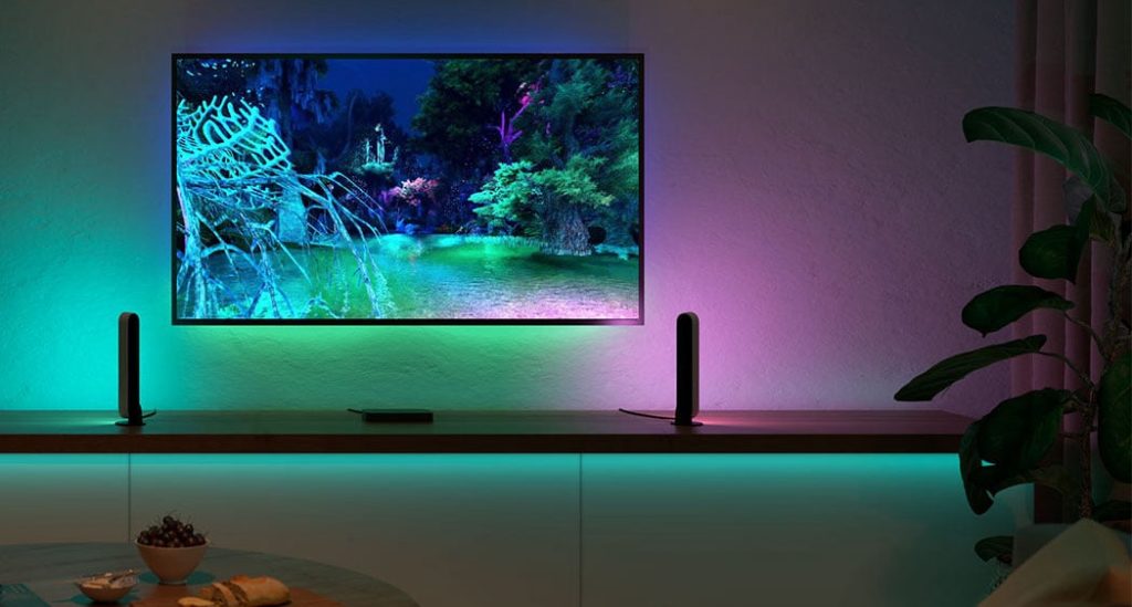Kun näyttö siirtyy väristä toiseen, niin myös valot ovat. Näytön ympärillä oleva kevyt nauha saattaa siirtyä heijastamaan näytön värejä, kun taas koko olohuoneesi yksittäiset sipulit muuttuvat tuottamaan tunnelman, joka vetää sinut syvemmälle elokuvaan.