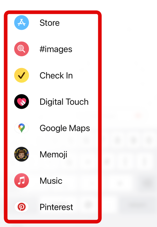 12.Vieritä nyt näytöllä olevaa luetteloa löytääksesi sovelluksen, jota haluat käyttää Imessagessa. Napauta sovellusta, kun löydät sen.