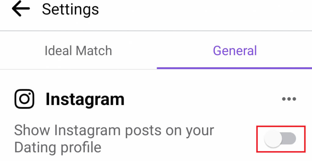 3. Yhdistä treffiprofiilisi Instagram-tiliisi. Siirry kohtaanYleiset asetuksetja napauta painiketta aivan vieressäInstagramvaihtoehto.