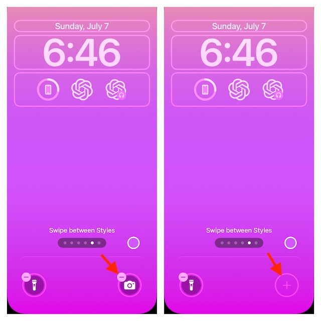 - Napauta tällä näytöllä pieni“-” miinus painikeNäytetään toimintapainikkeen yläosassa, kuten kamera ja taskulamppu sen poistamiseksi.