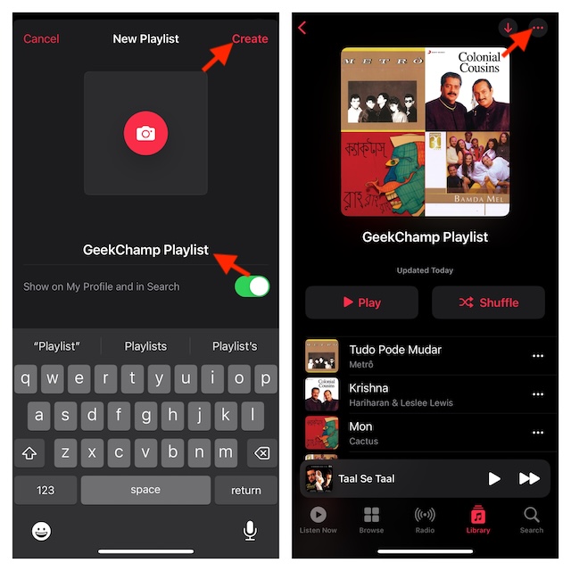 6.Kun olet mukauttanut musiikkisoittolistaan, napautaLuodaPainike näytön oikeassa yläkulmassa.