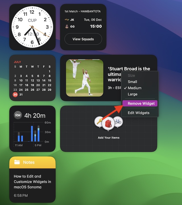 Lisää, muokkaa ja mukauta työpöydän widgetit MacOS 14 Sonoma