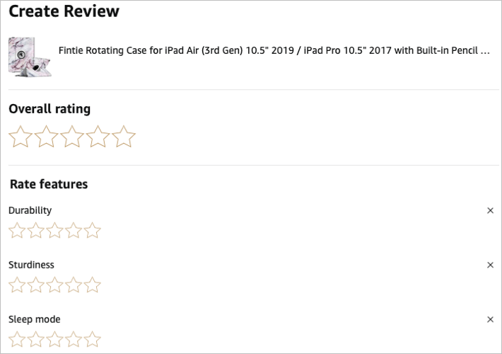 - Aloita lisäämällä tuotteelle yleinen tähtiluokitus. Voit sitten arvioida tuotteen yksittäistä luokkaa kohden, jos haluat. Nämä luokat vaihtelevat tarkistamasi tuotteen tyypin mukaan.