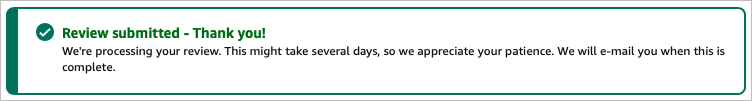 Kun arvostelu hyväksytään, saat sähköpostin, jossa ilmoitetaan, että se ilmestyy tuotesivulle muiden asiakasarvostelujen kanssa.