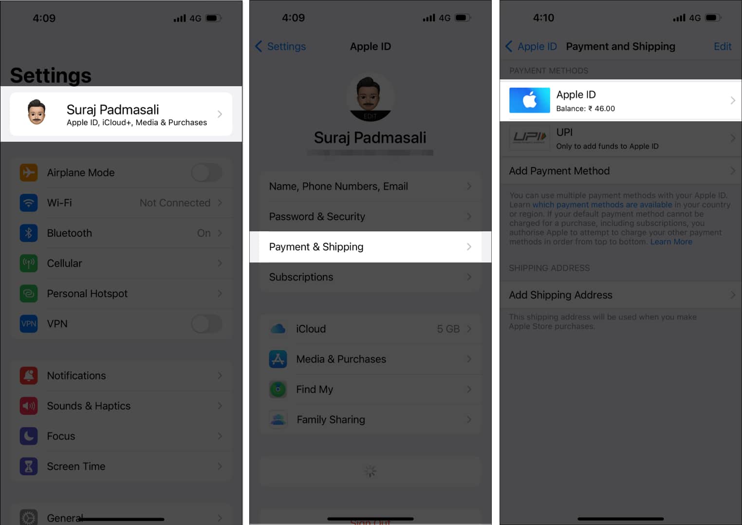 Joskus maksu epäonnistuu huonon Internet -yhteyden vuoksi. Joten varmista, että sinulla on vakaa verkko, joko Wi-Fi tai Cellular. Voit myös käynnistää laitteen uudelleen, kirjautua sisään ja kirjautua sisään Apple ID -sovelluksella ja yrittää lisätä varoja Apple ID: hen muutaman minuutin kuluttua.