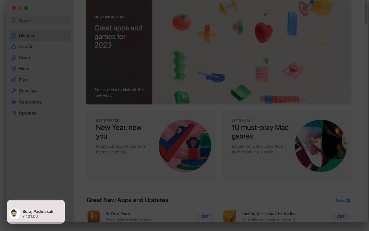 Kaupan hyvityksen tarkistaminen on melko yksinkertaista. Avaa App Store, ja käytettävissä oleva saldo näytetään nimesi alla. Jos et ole kirjautunut sisään, napsauta sivupalkin alaosassa olevaa kirjautumispainiketta. Sinulla ei myöskään ole saldoa, jos määrää ei ole.