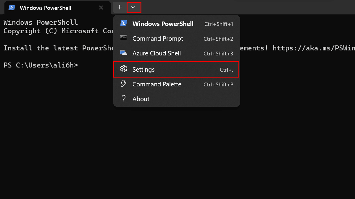- "Profiilit”Osa, napsautaKomentokehotus.