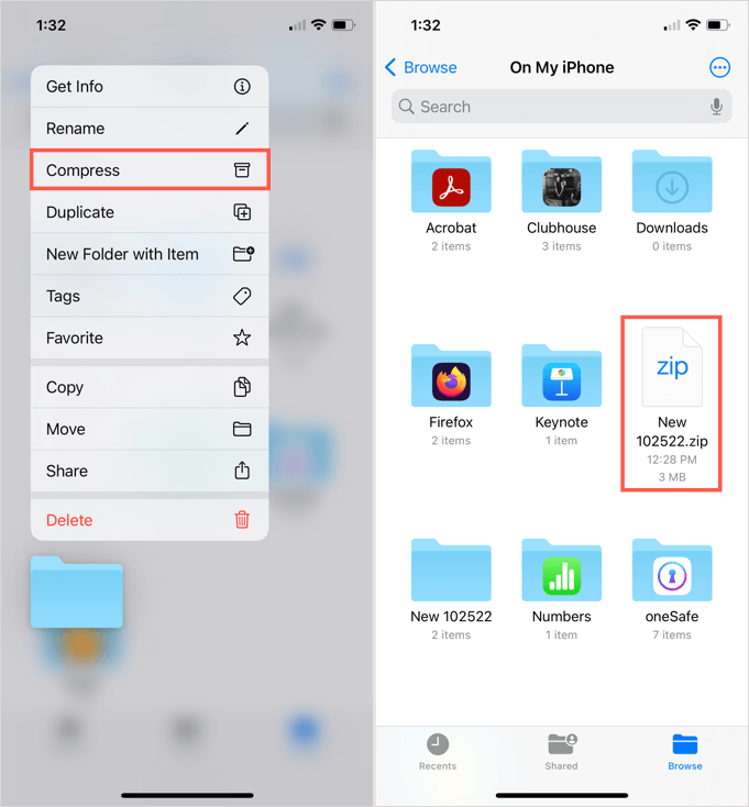 - Näet zip -tiedostosi, joka on luotu samalla nimellä kuin kansio.